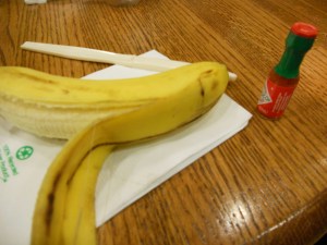 We woke up and ate some breakfast to fuel us for the day. I had some banana and peanut butter! (hot sauce not included in this complete breakfast – it was just very tiny and I needed to get some perspective).