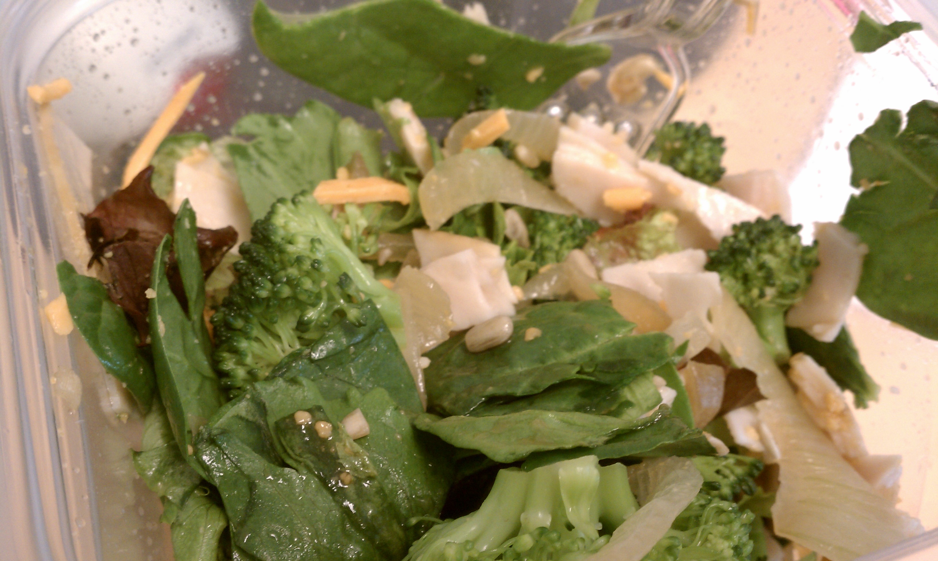 I also do a good job of bringing my own food for breakfast, lunch and snacks. Like yesterday, I brought a salad, a soy pudding cup and carrots and hummus.