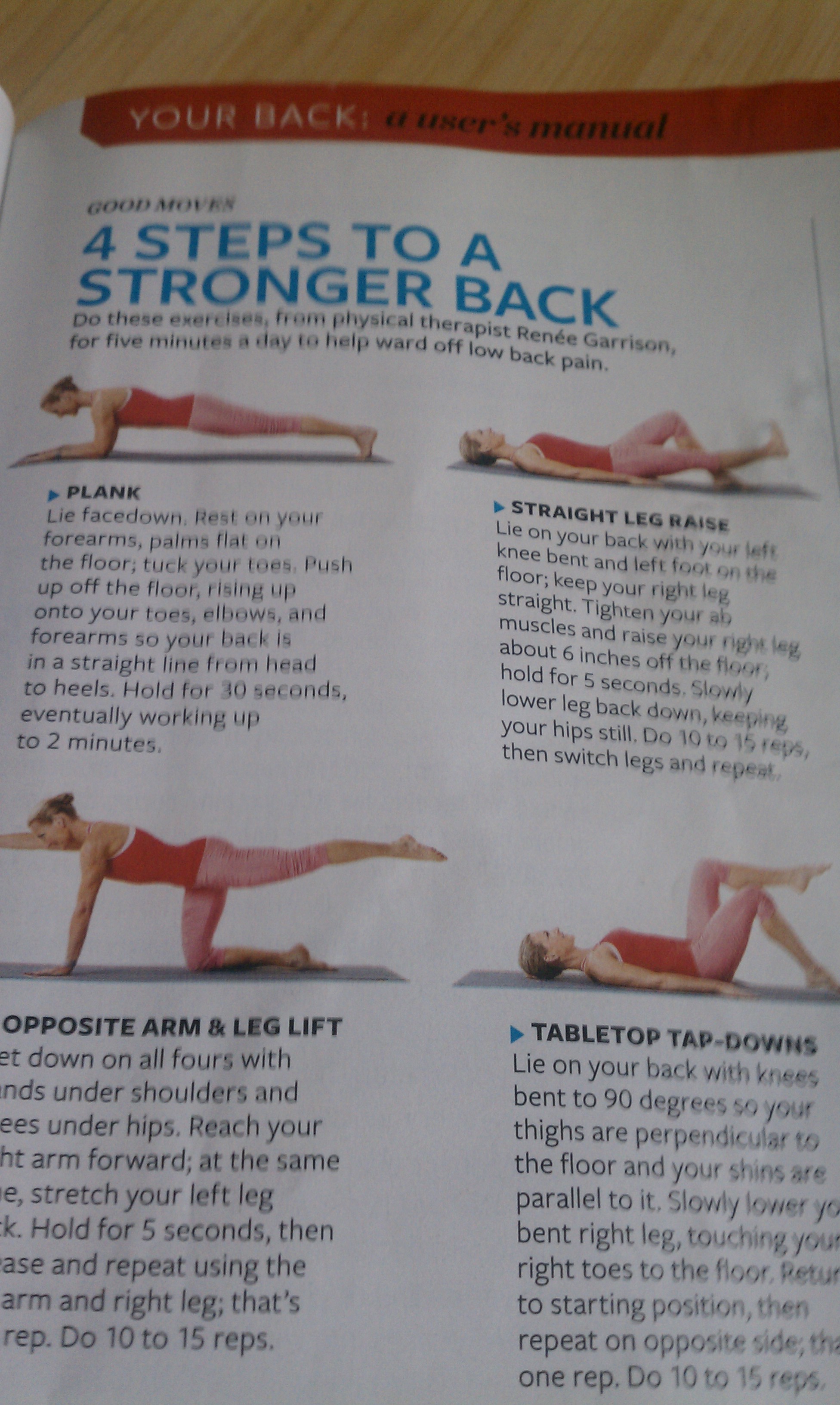 The day passed as usual and before I knew it I was back at the gym on the elliptical. I finished my workout with the following group of exercises courtesy of Health Magazine.