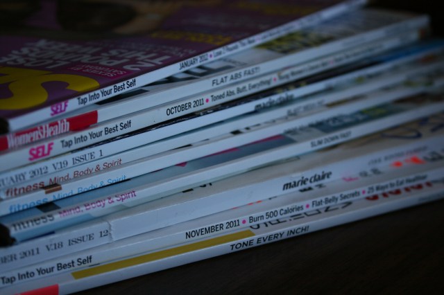 Yesterday, I went through a whole bunch of magazines that I have accumulated through free trails from race registrations and pulled out the workouts and recipes before I recycled them. Now I have the essentials and I don’t have to wade through pages of advertisements and use up space in our “less than spacious” apartment.