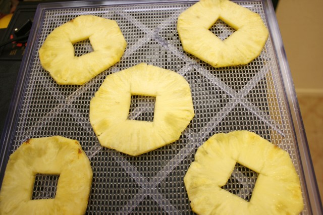 We are now the proud parents of a DEHYDRATOR! Dave’s mom did not want hers so he fished it out of her garage and now it lives with us. We have already put it to work making dehydrated pineapple!
