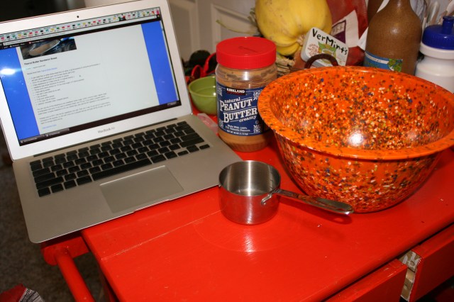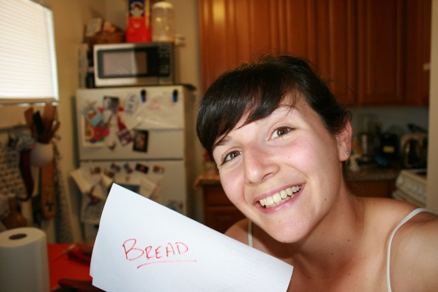 After munching on another handful of cereal after dinner I had an urge to bake. A while ago I wrote down that I wanted to make Chocolate Covered Katie‘s Peanut Butter Sandwich Bread, so when the oven beckoned I answered.