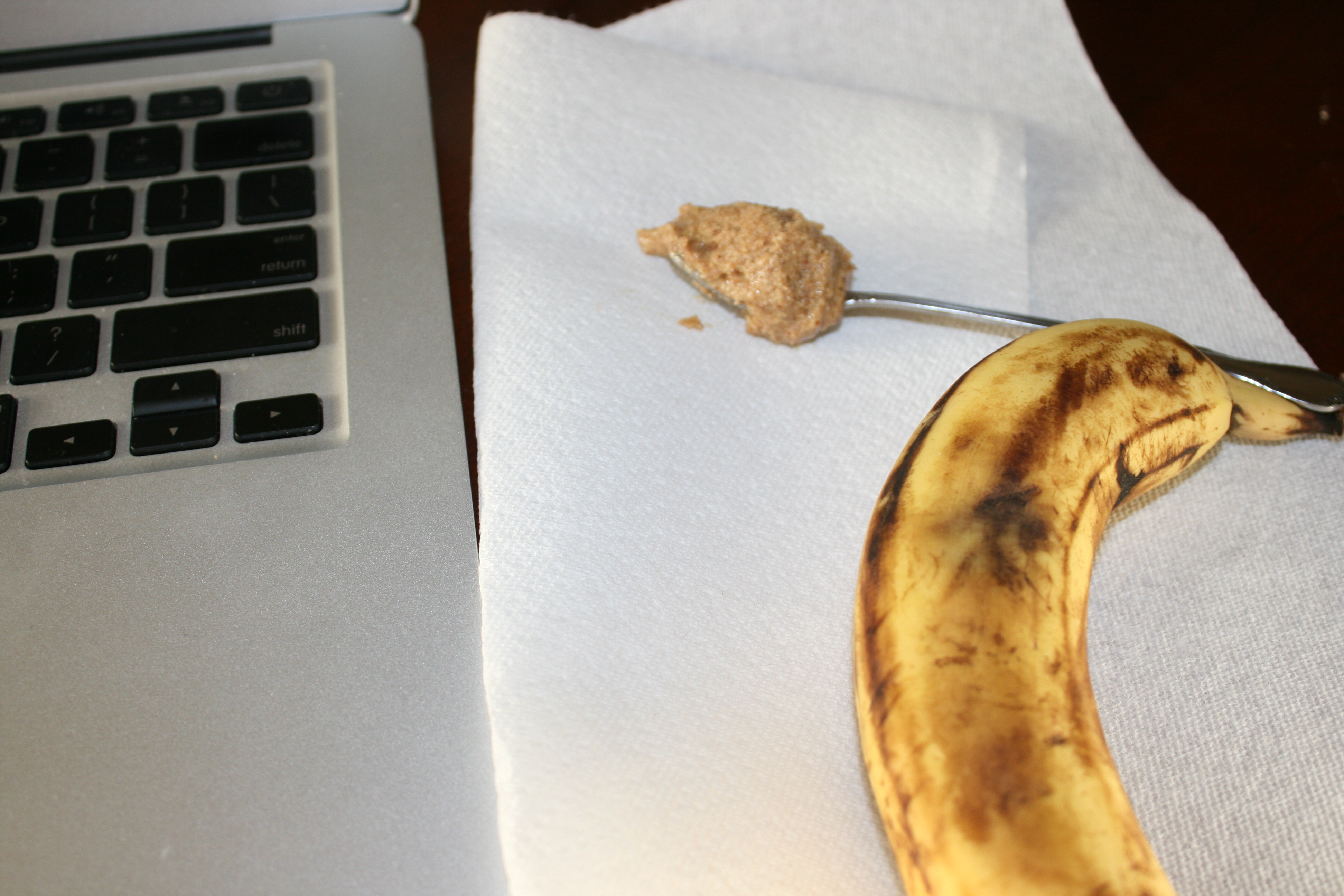Even though I woke up pretty sore Sunday morning, I was determined to run my seven mile goal for the day. So, while catching up on blogs that I have missed over the busy week at work, I ate one of my favorite meals of all time, banana and nut butter (this time it was almond butter).