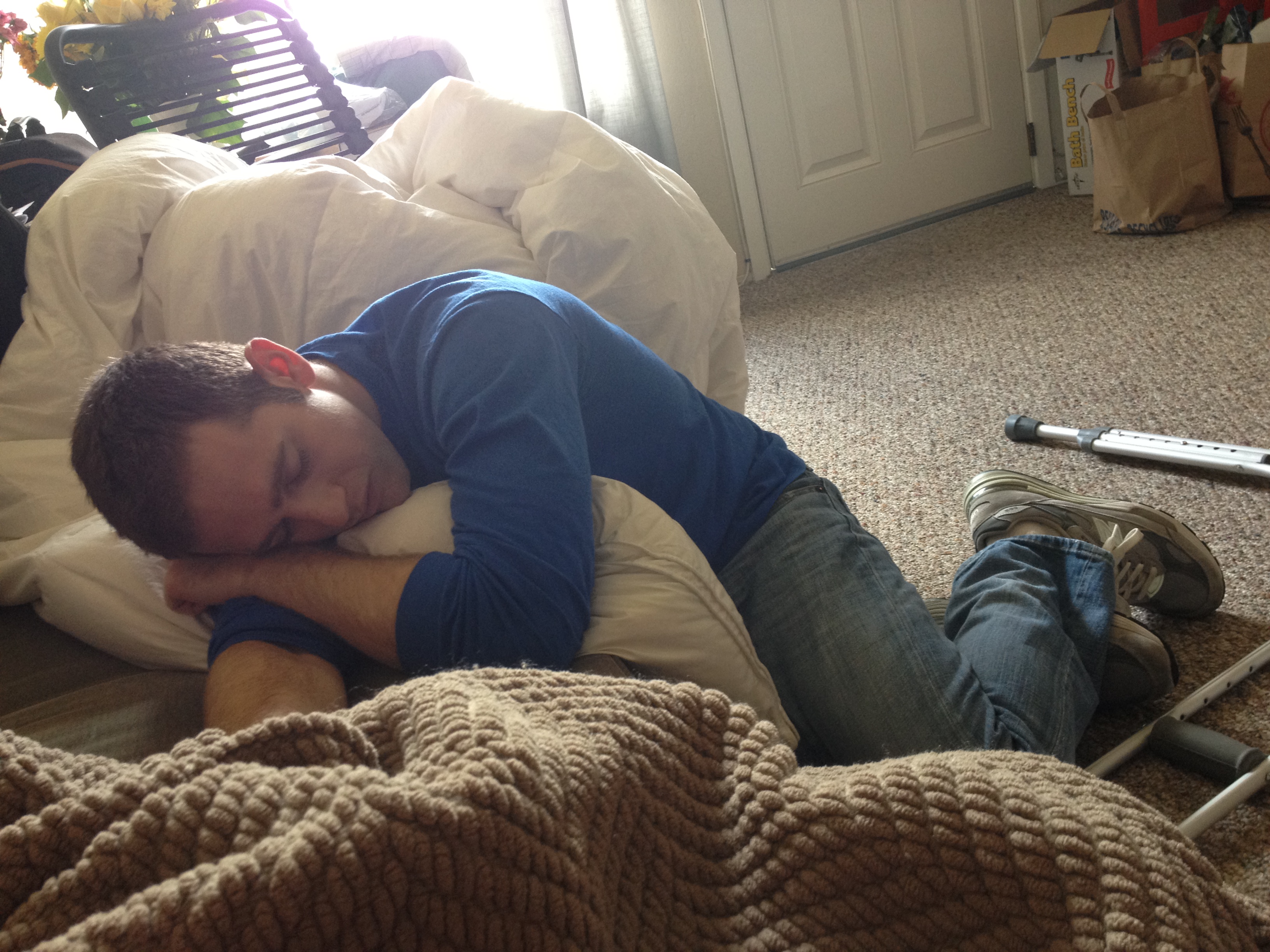 I wasn’t a complete bum all day long – I did do my strength exercises and practiced going up and down the stairs to my apartment building, which was exhausting, even for Dave.