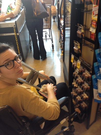 Then, like any other Sunday, we stocked up on some staples at the grocery store. Of course, when you are not the driver of your own wheel chair you never know where your chauffeur will leave you.