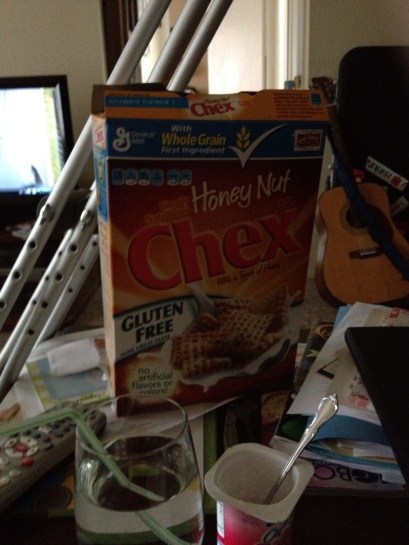Breakfast involved some cottage cheese and handfuls of one of my new favorite cereals – Honey Nut Chex