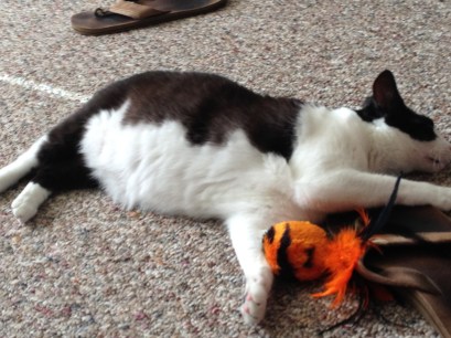 All I can say is she seems happy, she is well fed, and she gets TONS of cuddles from us 🙂