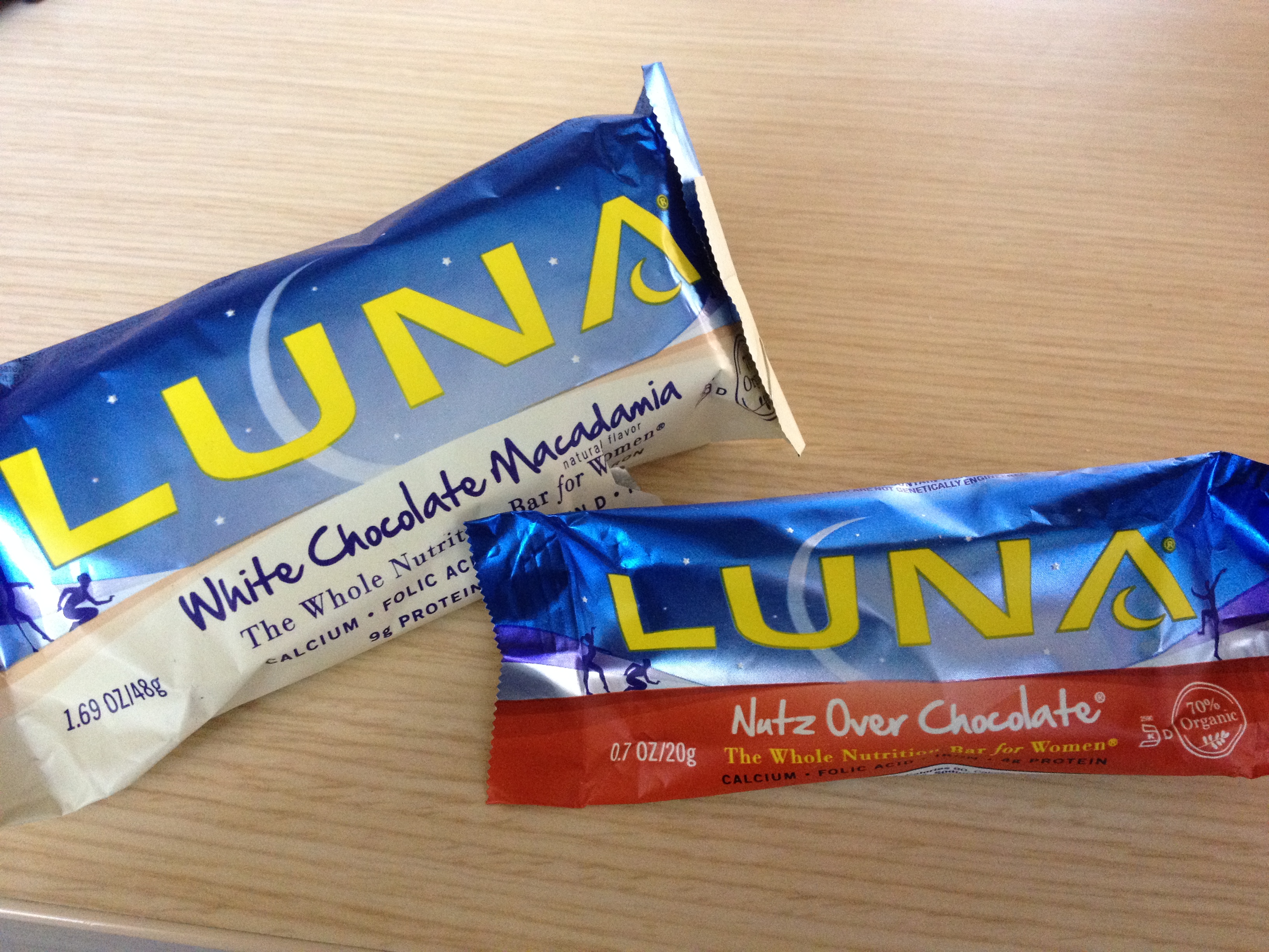 All of this extra exercising made me quite hungry at work yesterday and without a proper variety of snacks, I was forced to eat a Luna bar and then some. I normally keep edamame, nut butters and other healthy noshes at my desk, but since my absence I haven’t had a chance to restock all of the goodies. So Luna bars were the nourishment of the day.