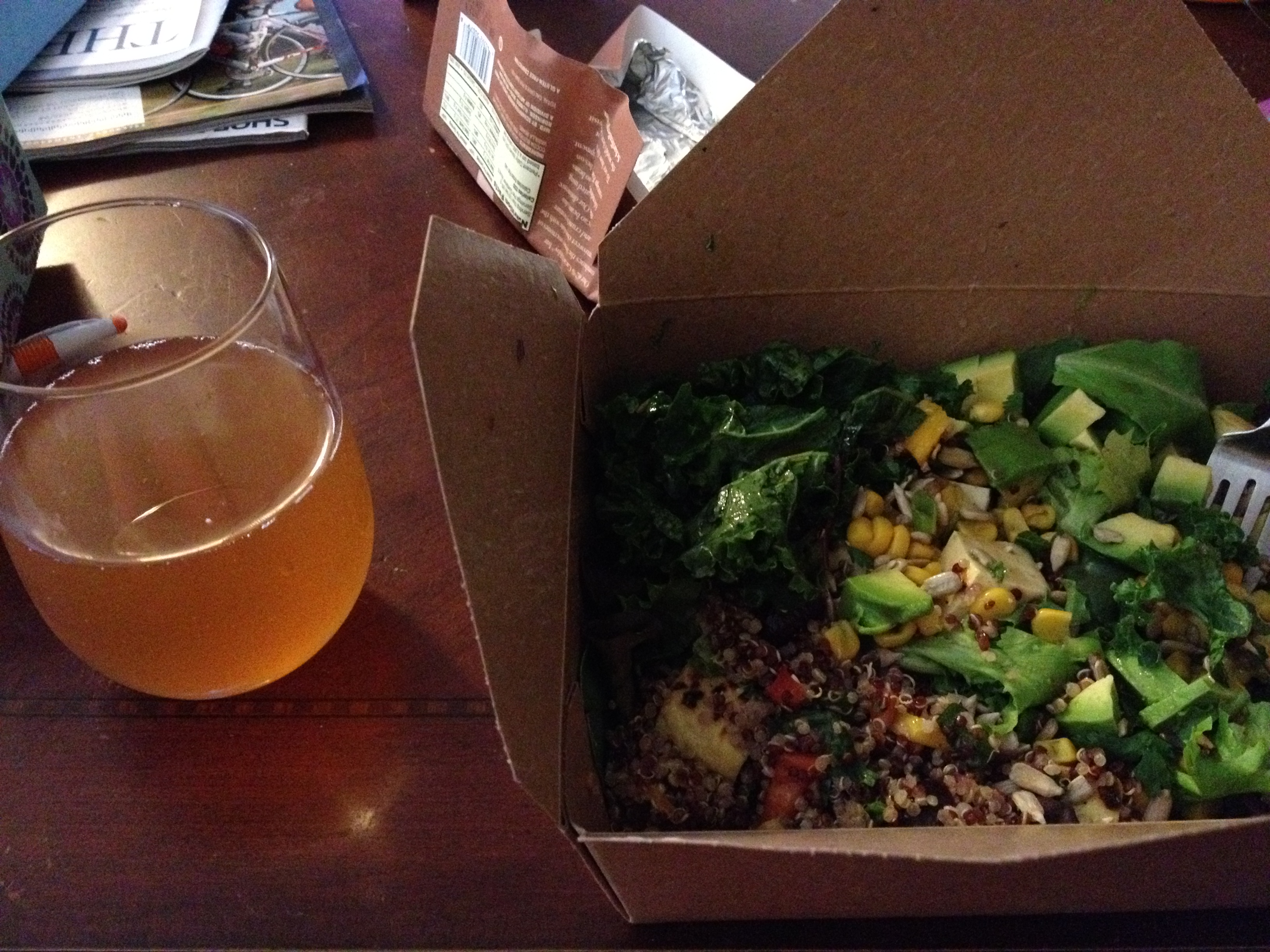 Because we were all out of food we made a quick detour to Whole Foods on the way home after work, where we picked up some cider and salad for dinner.