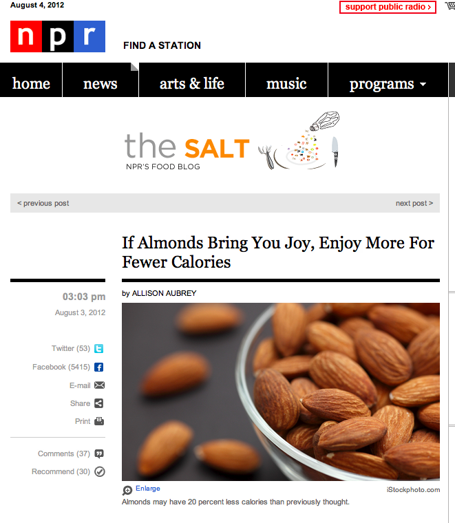 “Almonds may have 20% less calories than previously thought”