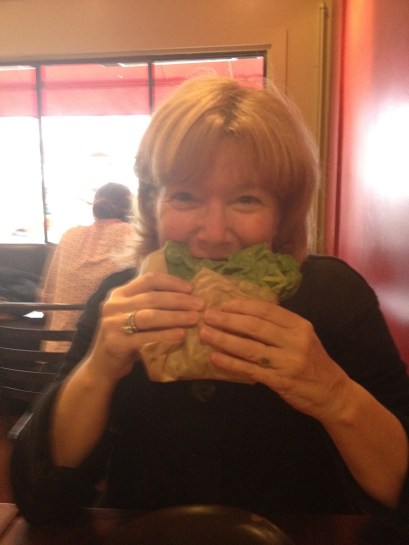 One question though. What is it that your mom is eating. It looks like a giant lettuce leaf in a brown paper bag.