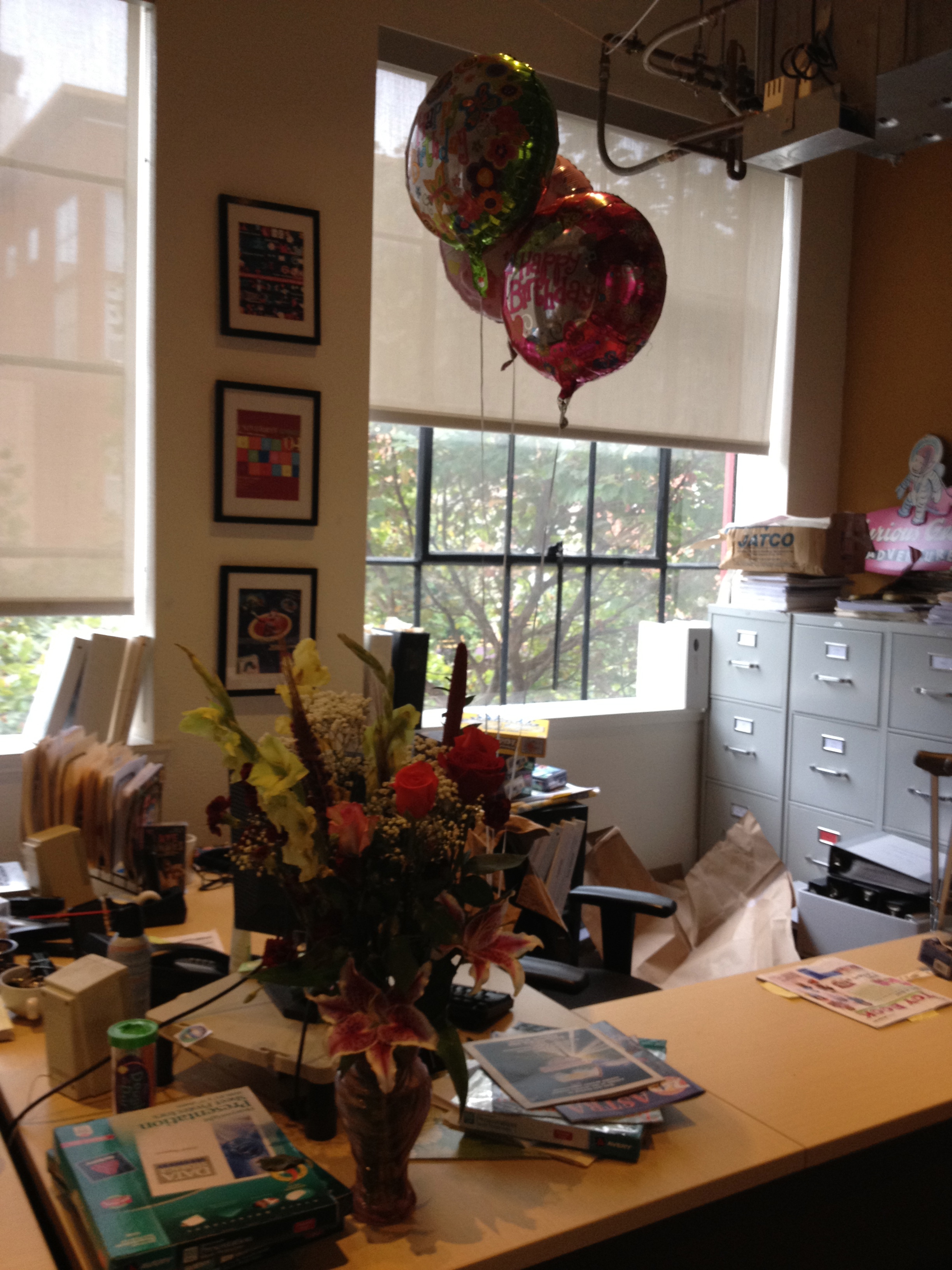 To start off, my mom is in town, and it is rare that we get to celebrate a birthday together. So having her here already made me feel better. When I got to work I was greeted with a bouquet of beautiful flowers and balloons (I love balloons!).