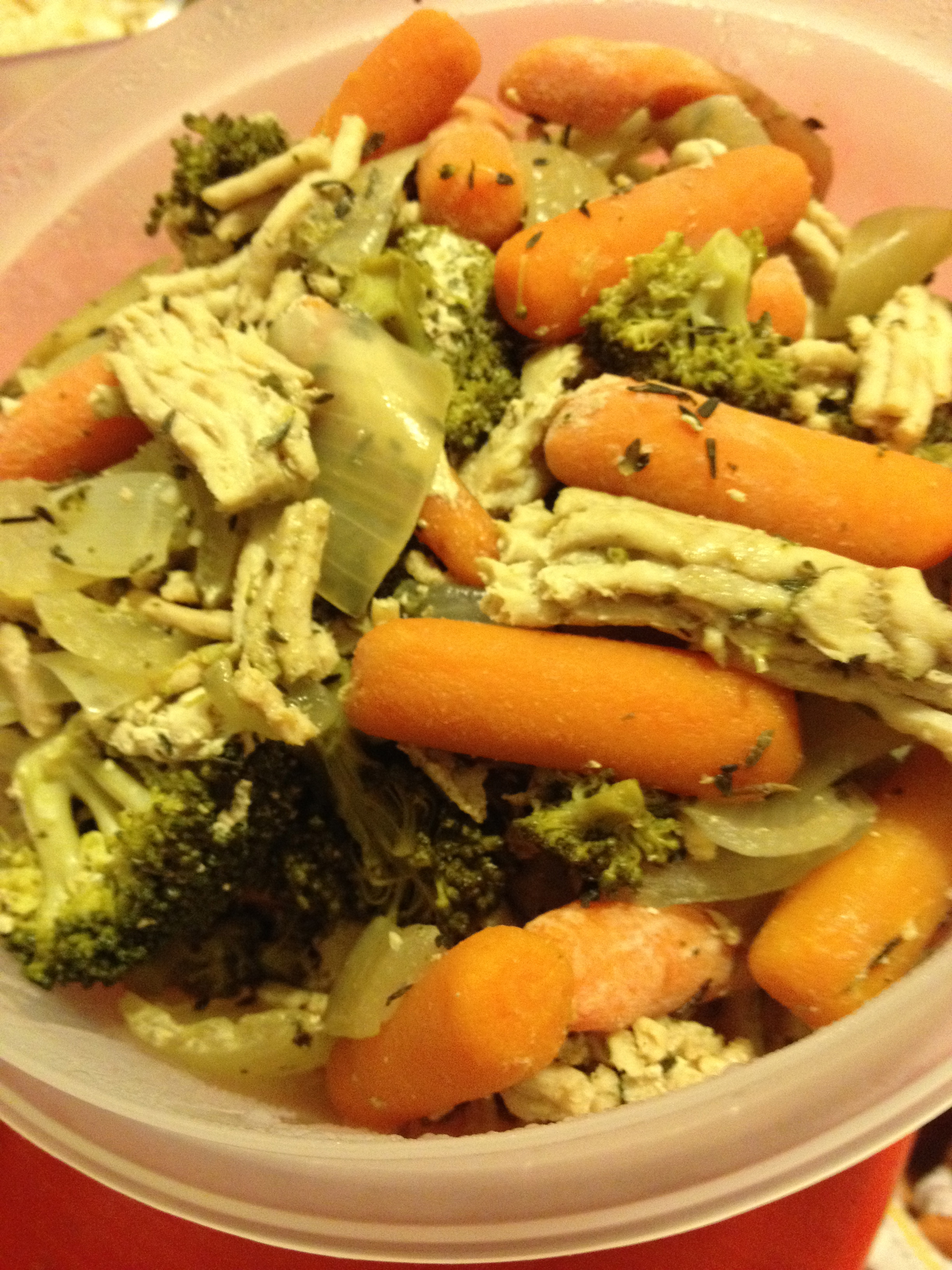 This week’s meal was super simple – lean ground turkey, veggies, chicken broth and lots of thyme, basil and garlic π