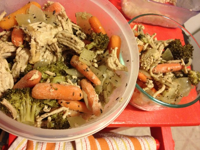 I make a meal sunday night and then I have it to either take for lunch – so I don’t have to worry about preparing my meals in the morning – or I have dinner ready to heat up.