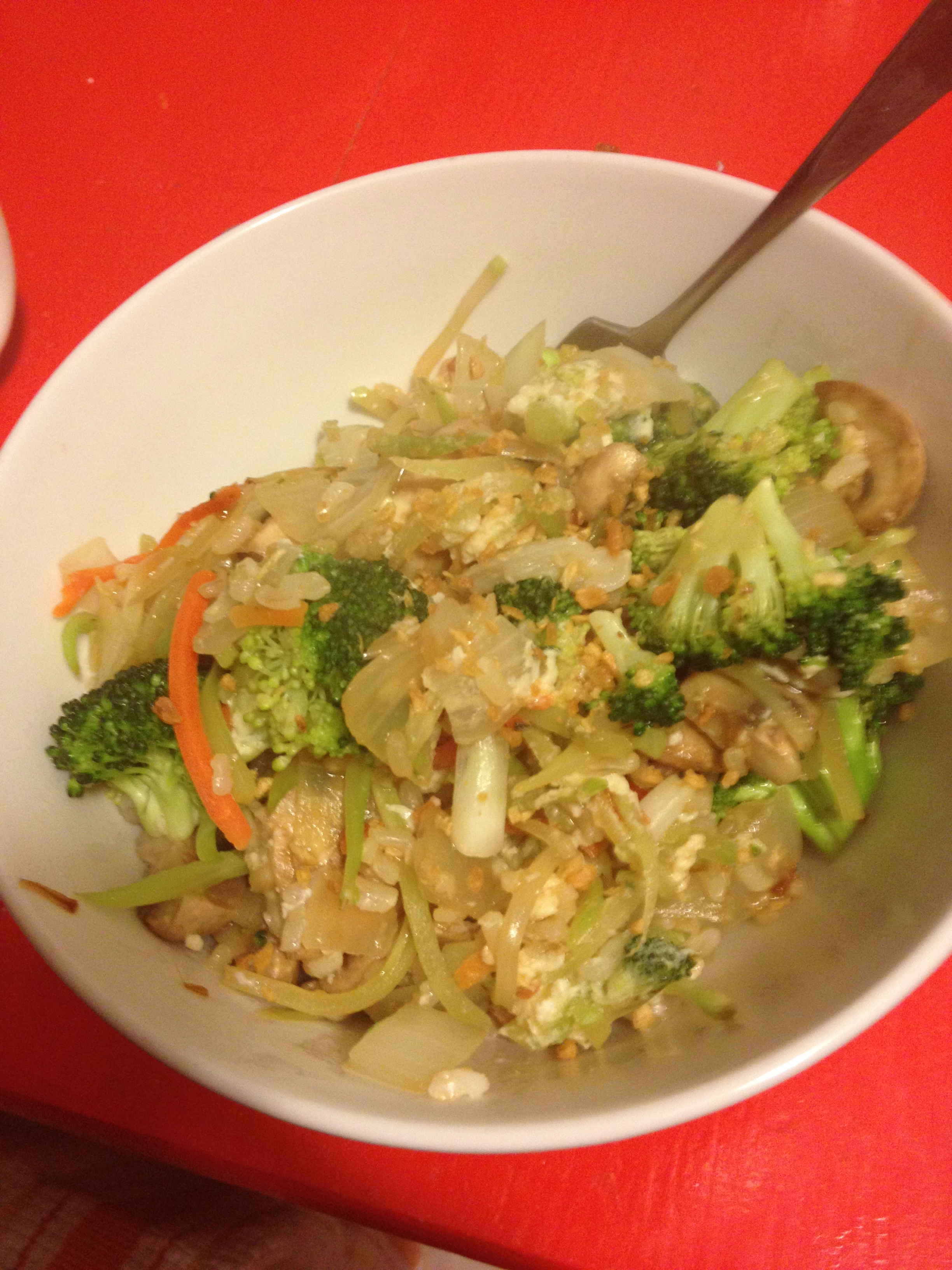 Once I arrived home it was straight to the kitchen to cook up some eggs with onions, broccoli, mushrooms and brown rice, all topped with some asian dressing.