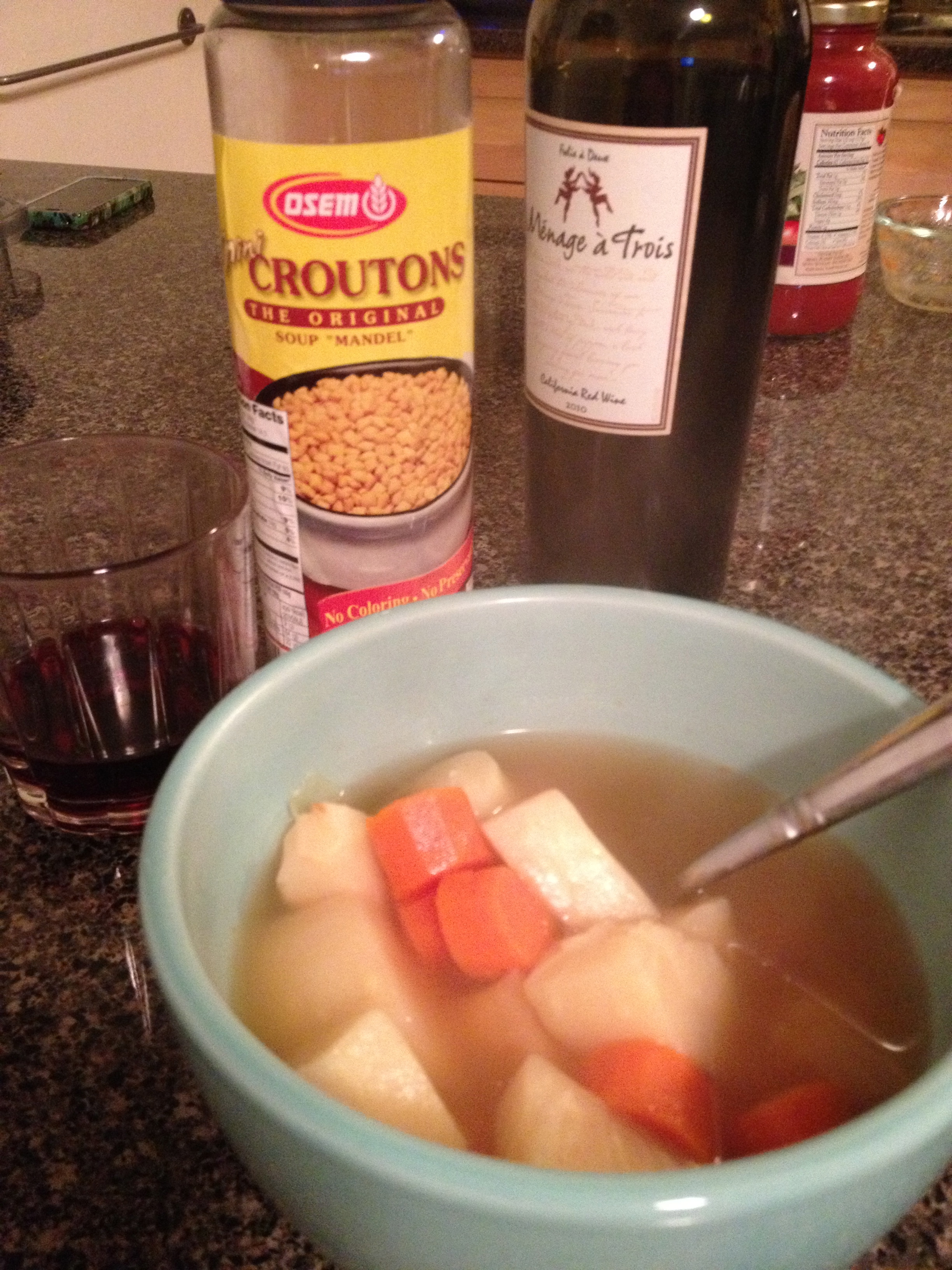 The evening started with a good glass of wine and some winter veggie soup – so good!