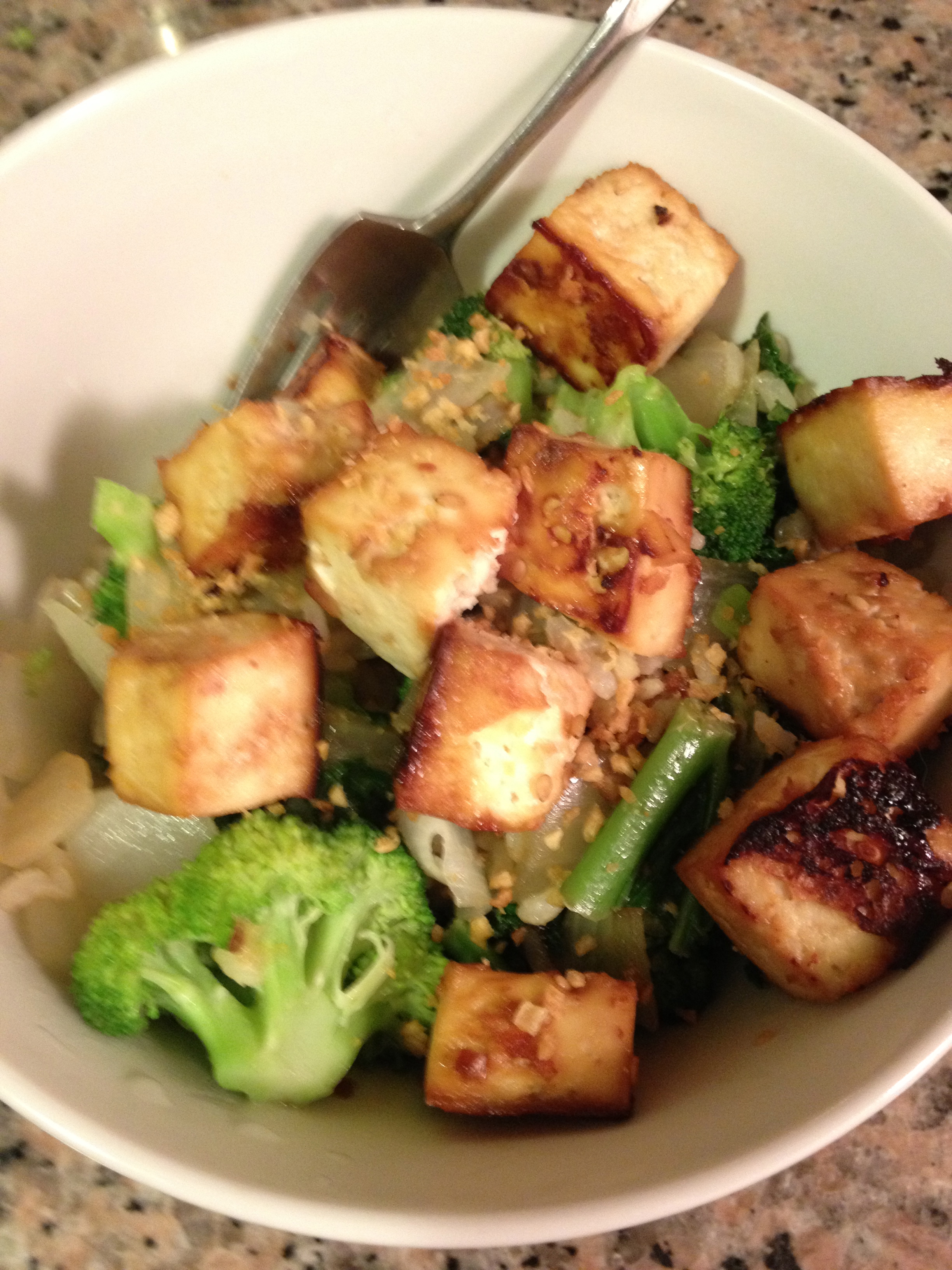 By the end of the day I was ready for a good meal for dinner so I baked up some tofu with teriyaki sauce and sautéed some veggies