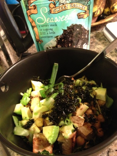 The salad was delicious on its own, but when I found this seaweed snack from Trader Joe’s I knew that my dinner would be a success.