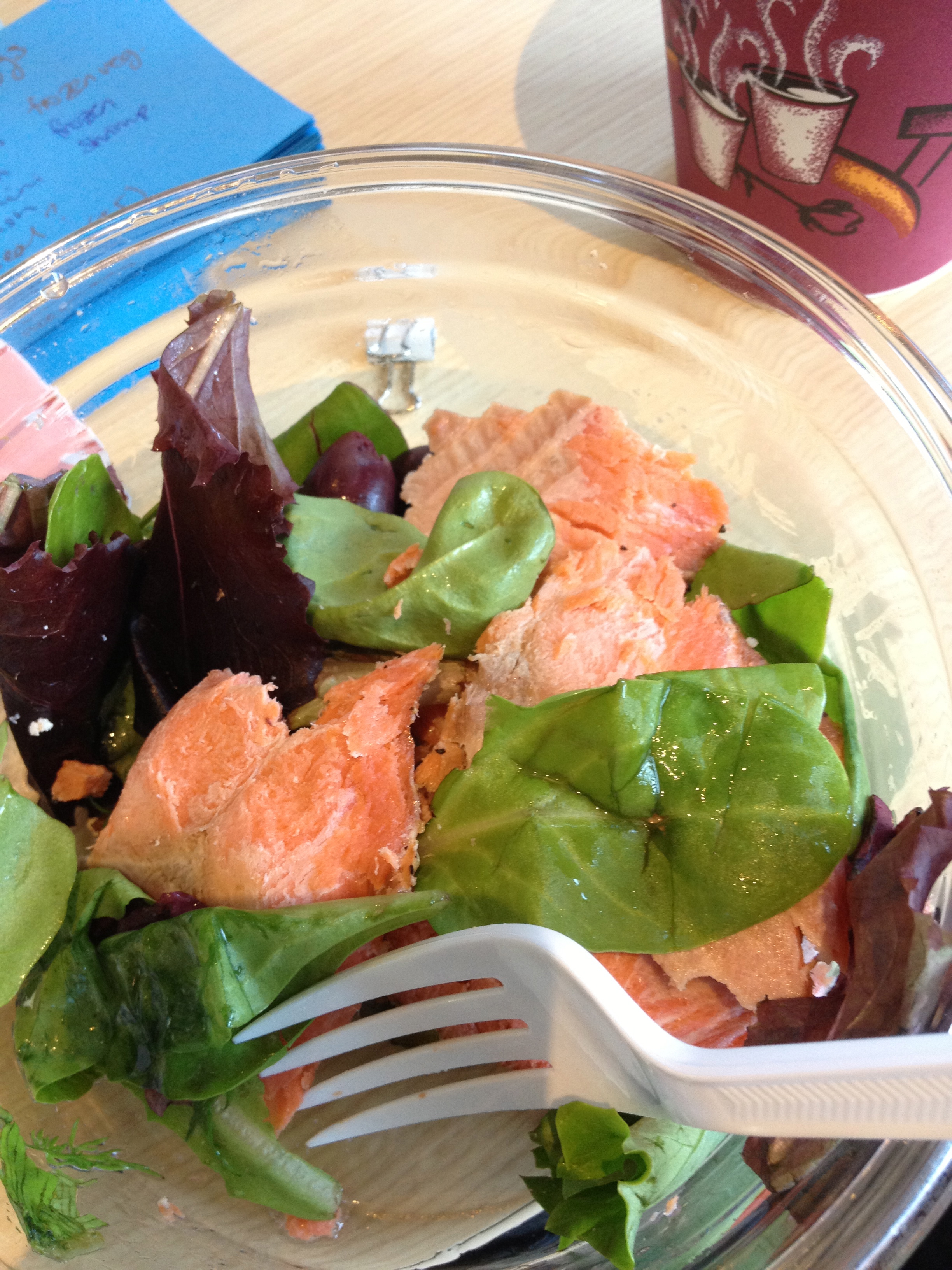 Today I made sure lunch would be filling so I loaded up on some protein and healthy fats with smoked salmon and olives in a salad.