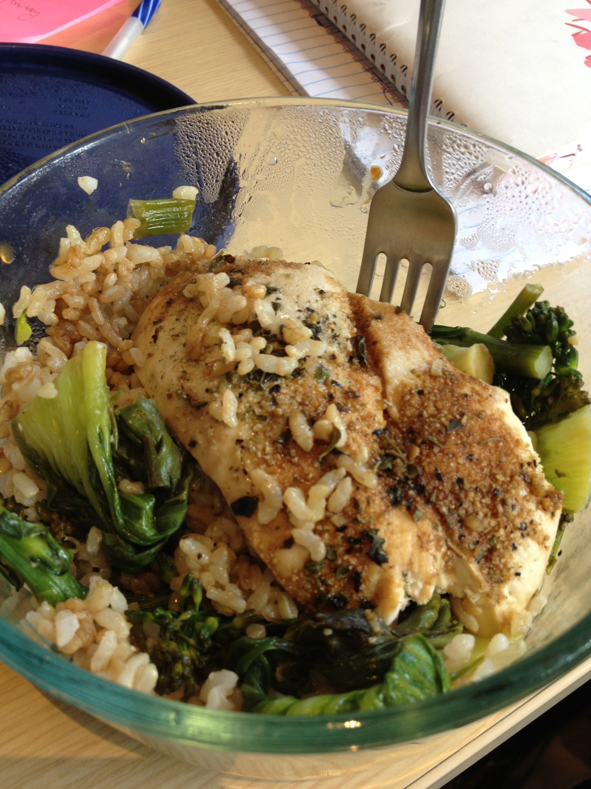 For instance, I baked some simple chicken in the oven with some spices and then cooked up some bokchoy with lemon, green onions and garlic. I added some brown rice to balance out the meal and topped it with some balsamic vinegar and I was all set to eat in about half an hour.