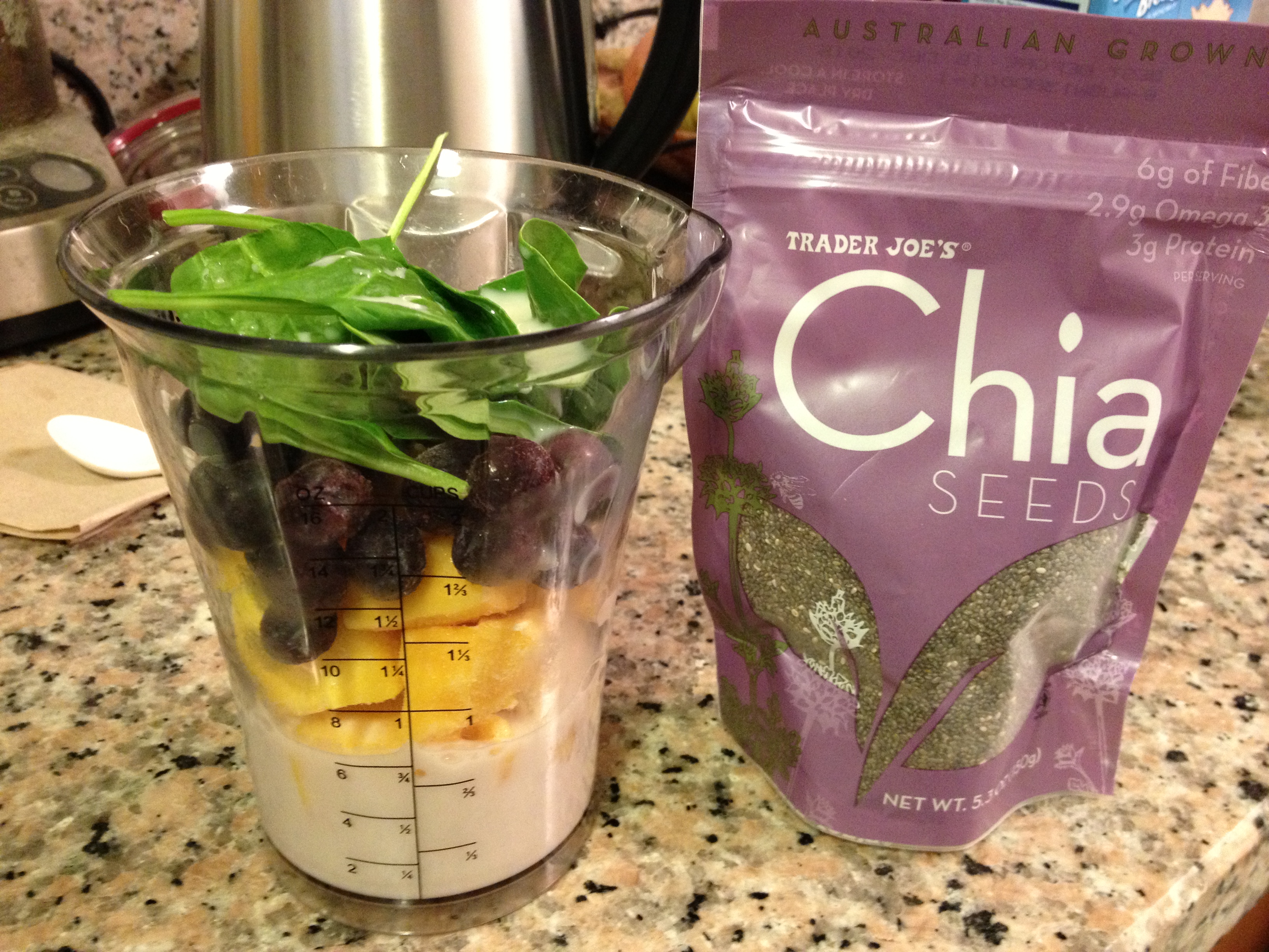 Yesterday I broke out the frozen fruit and even went out on a limb and added my first chia seeds to my smoothie.