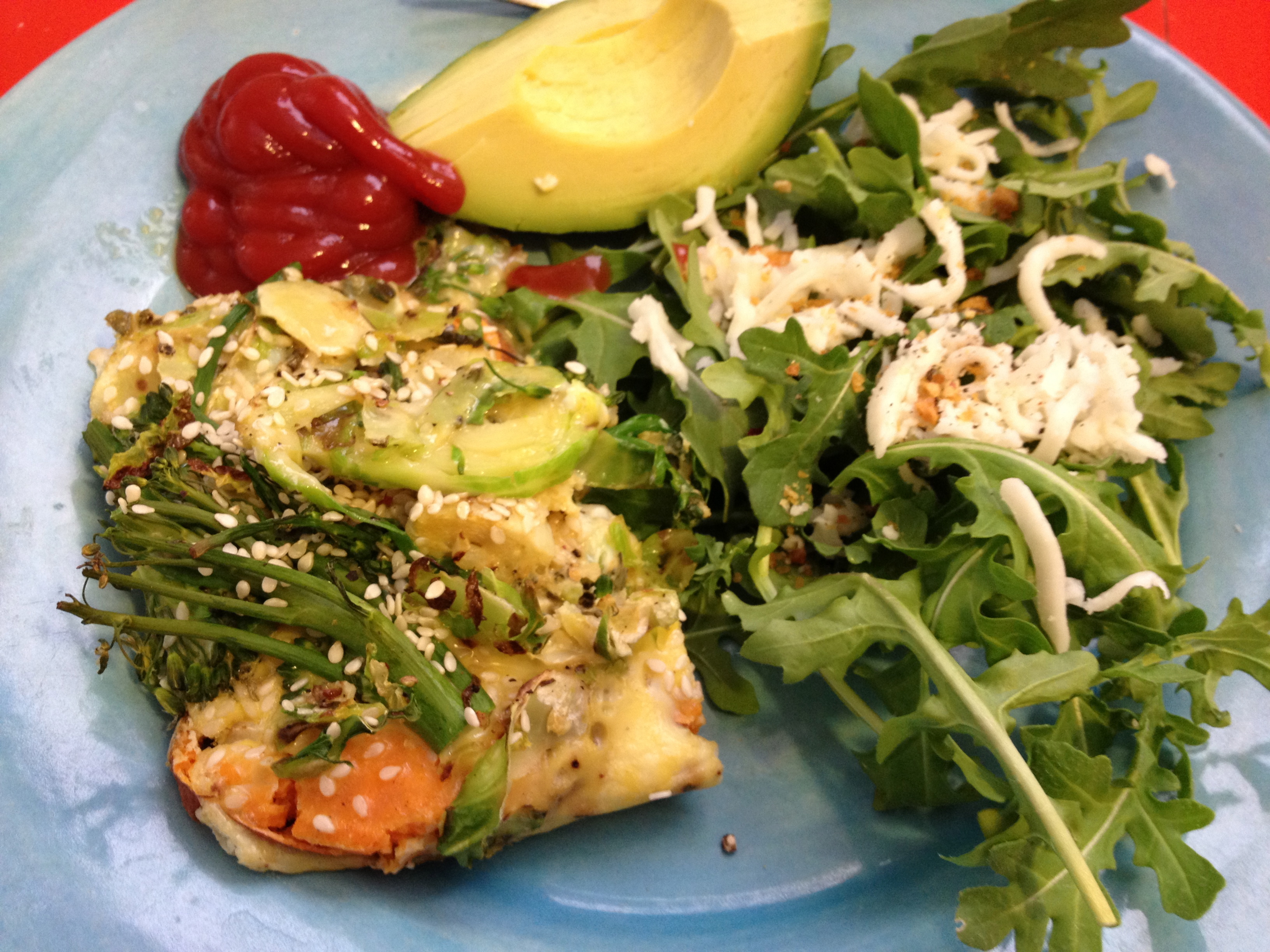 I served this dish with arrugala and avocado and KETCHUP! Yum!