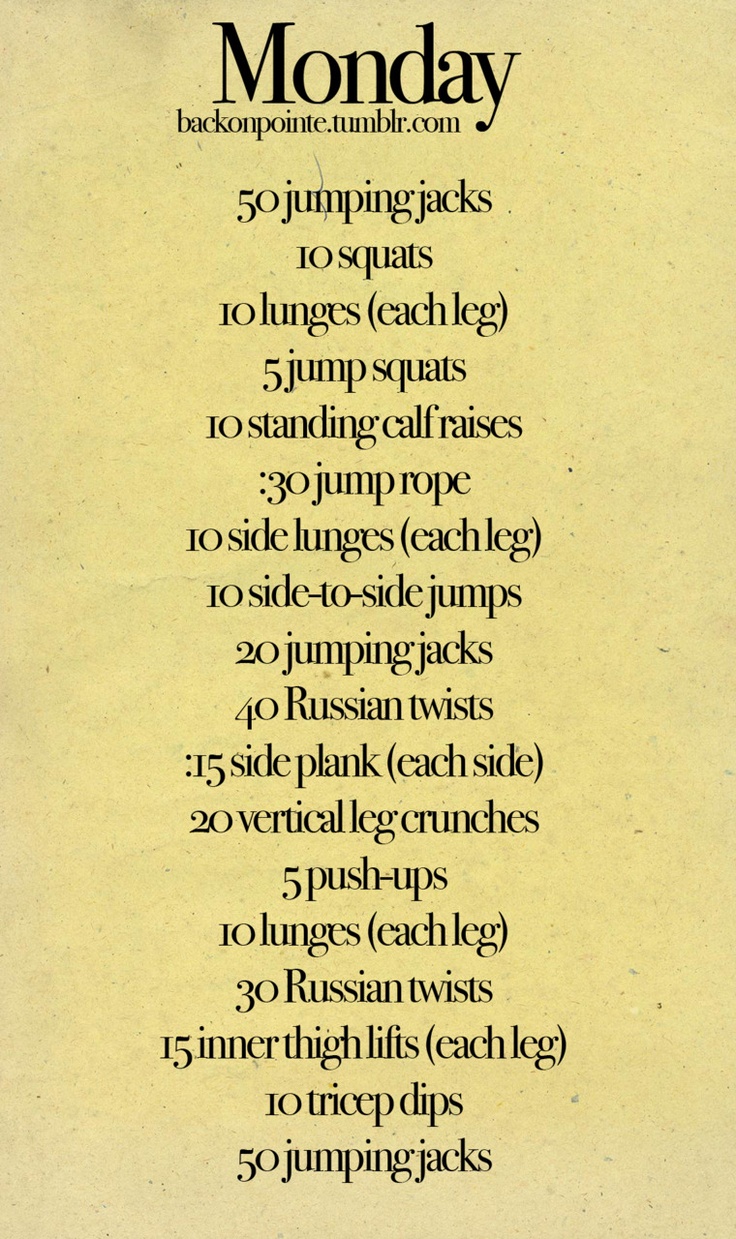 I usually like to try and do full body workouts that involve, legs, arms and abs, but I as long as I am moving for about 30 – 45 minutes I am satisfied.